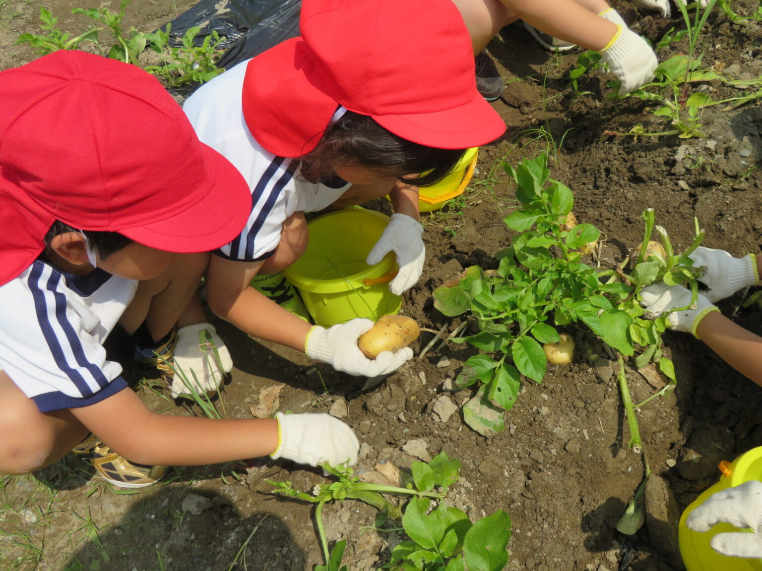 年長さんが園内の畑でじゃがいもの収穫を行いました。手より大きなじゃがいもをたくさん取ることが出来ました。土深くなったじゃがいもをお友達と協力して見つける姿もありました。