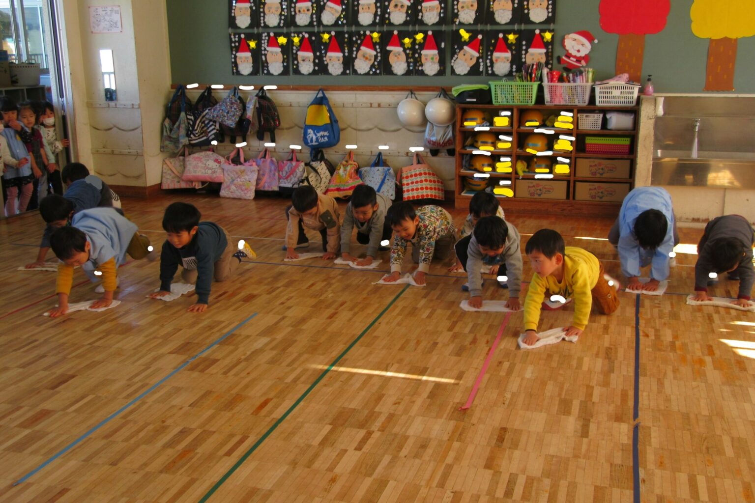 R2年12月22日(火)に終業式を行いました。放送で園長先生のお話を聞き、2学期を振り返ったり、冬休みのお約束を確認したりしました。その後は、各クラスで大掃除をして新しい年を迎える準備をしました。病気や怪我に気をつけて楽しい冬休みをお過ごしください。3学期に元気な子どもたちに会えることを楽しみにしています。