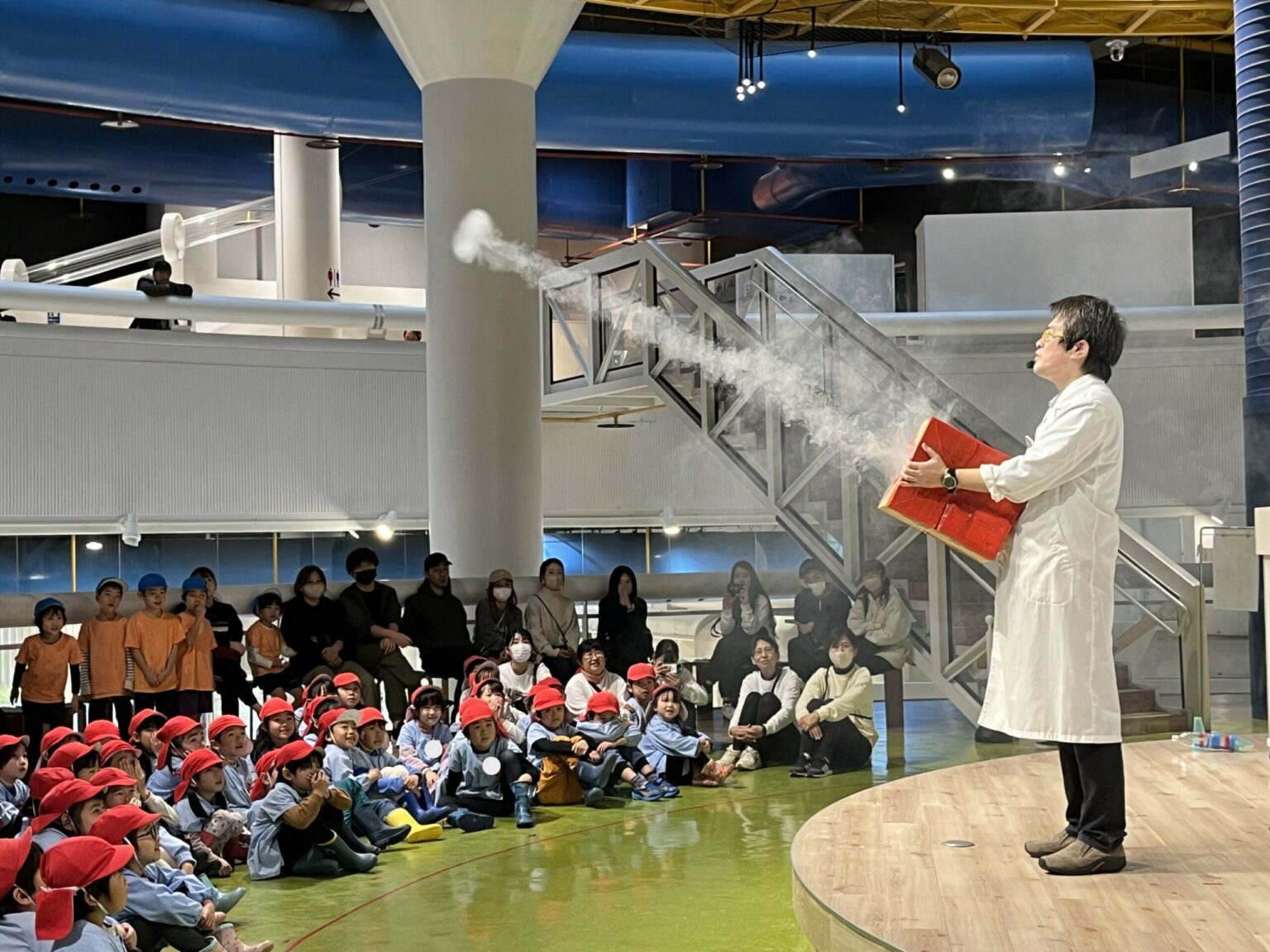 R6年2月22日(木)に年長組が浜松科学館みらい~らへ行きました。バスの中では歌を歌ったり、様々なレクリエーションを楽しみながら過ごしました!科学館に到着すると館内の展示物を体験したり、「飛ぶ」がテーマのサイエンスショーを観たりと楽しみました☆お昼は、おにぎりとお菓子を食べてニコニコな子供達!幼稚園最後の遠足で楽しい思い出が出来ました❤
