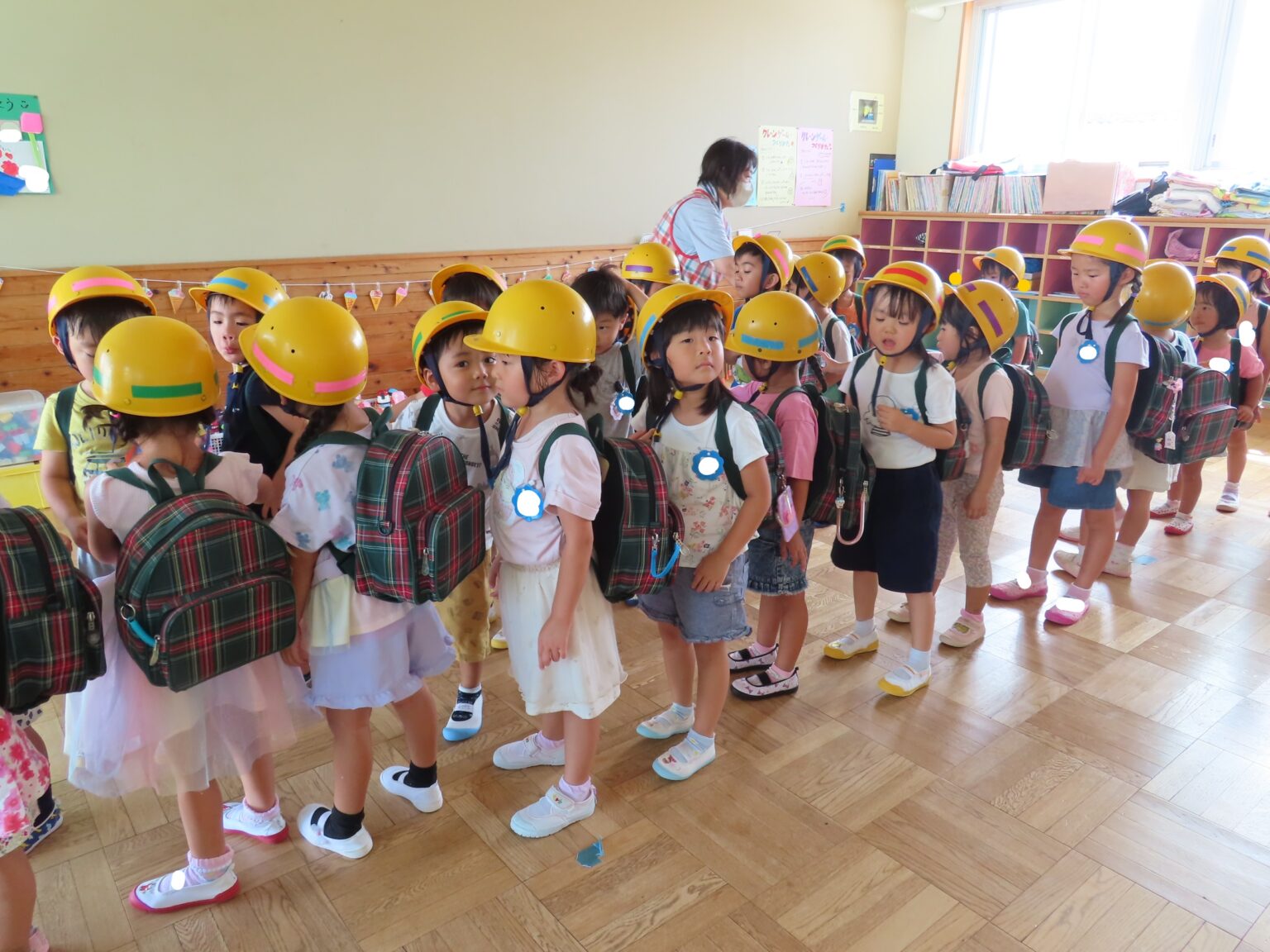 令和5年度7月20日(木)に水害訓練が行われました。台風や洪水などで水害が起きる場合を想定し、荷物をまとめ1階のクラスは2階へ避難しました。先生たちの話をよく聞き、取り組むことが出来ました!!