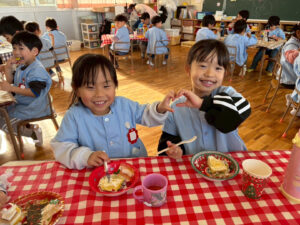 令和7年12月22日(月)に、クリスマス会が行われました。体育館で先生達による劇を観たり、歌を歌ったりして過ごしました。