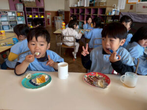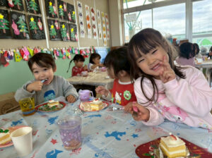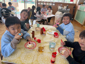 お部屋ではクリスマスにちなんだ活動をしたり、美味しいケーキを頬張ったりしてクリスマスを楽しみました😊