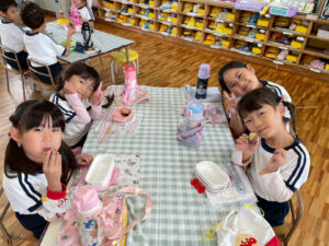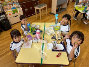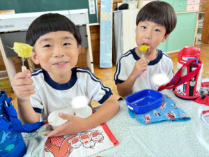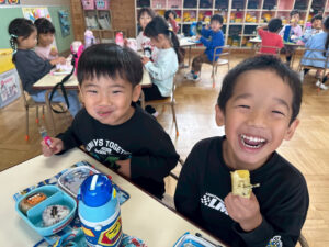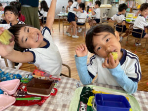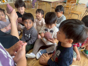 お芋を嬉しそうに頬張る子供達😋たくさんおかわりしてニコニコで食べていました♪