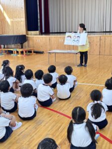 歯科衛生士さんから食べ物を食べる時の4つのお約束を聞いたり、「ふーふーこま」を作ったり、「お口じゃんけん」で遊びながら口の筋肉を鍛えました😆