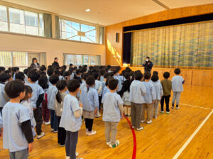 消防士さんのお話を聞き、火の怖さや命の大切さを学び修了式を終えました。