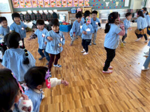 子供達は折り紙や新聞紙で作った豆を「鬼は外!」と大きな声で言いながら投げ、鬼を退治しました👊🔥
