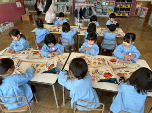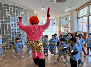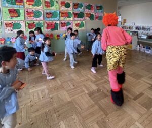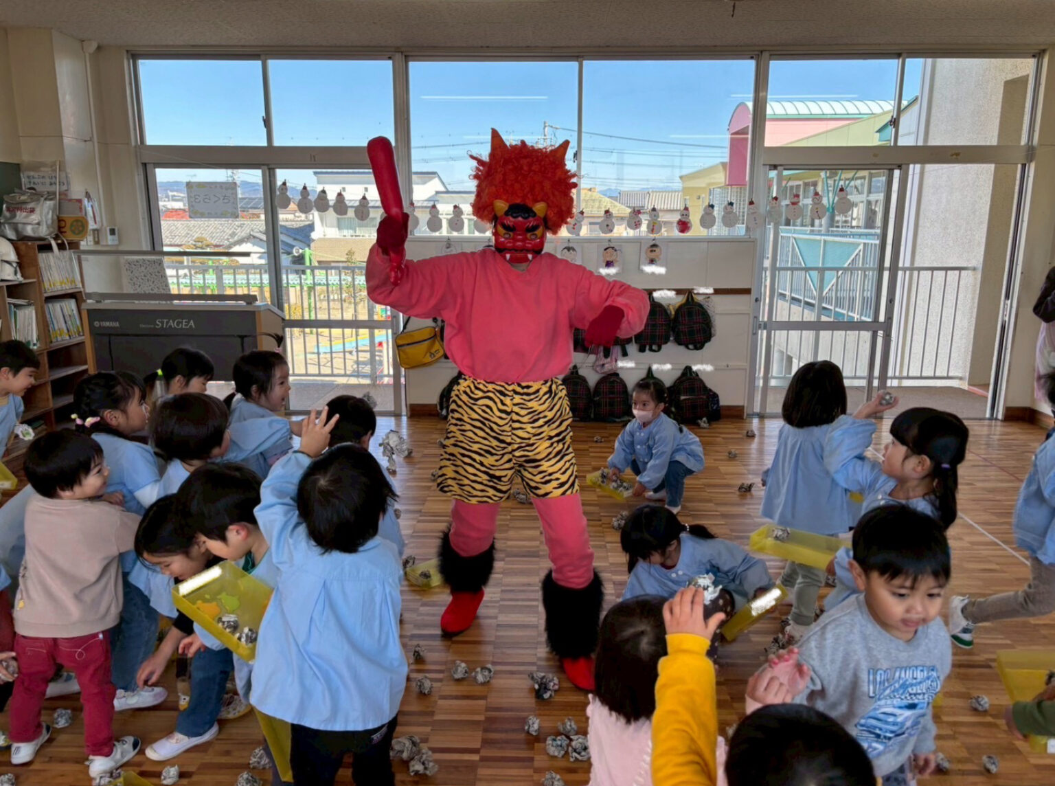 子供達は折り紙や新聞紙で作った豆を「鬼は外!」と大きな声で言いながら投げ、鬼を退治しました👊🔥