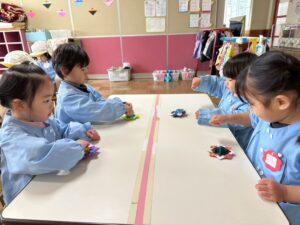 お部屋では冬休みに楽しかったことを発表したり、戸外遊びやお正月遊びを楽しんだりしました😊