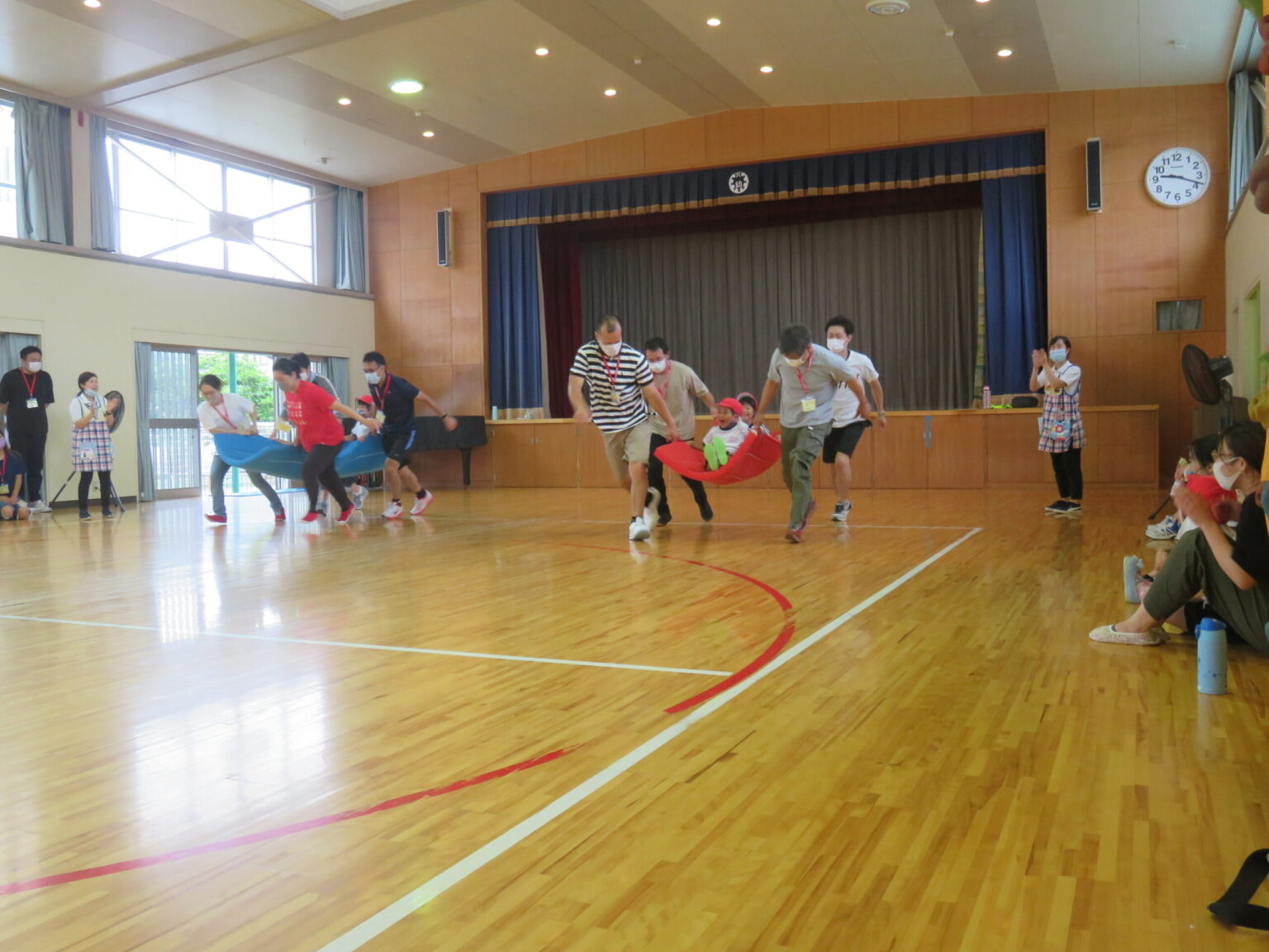 R2年6月12日(金)に保護者参観・参加会が行われました。お家の人と登園し、いつもの幼稚園とは少し違った雰囲気に緊張気味の子どもたちでしたが、朝の歌や季節の歌を歌ったり、お当番活動で名前を発表したりしていくうちに、いつも通りの元気な姿が見られました。各クラス、いろんな活動をして沢山遊んだ後は、お家の人にお歌と製作のプレゼント♪ちょっぴり照れながらも「いつもありがとう♡」とお家の人に渡す姿が見られましたよ。
