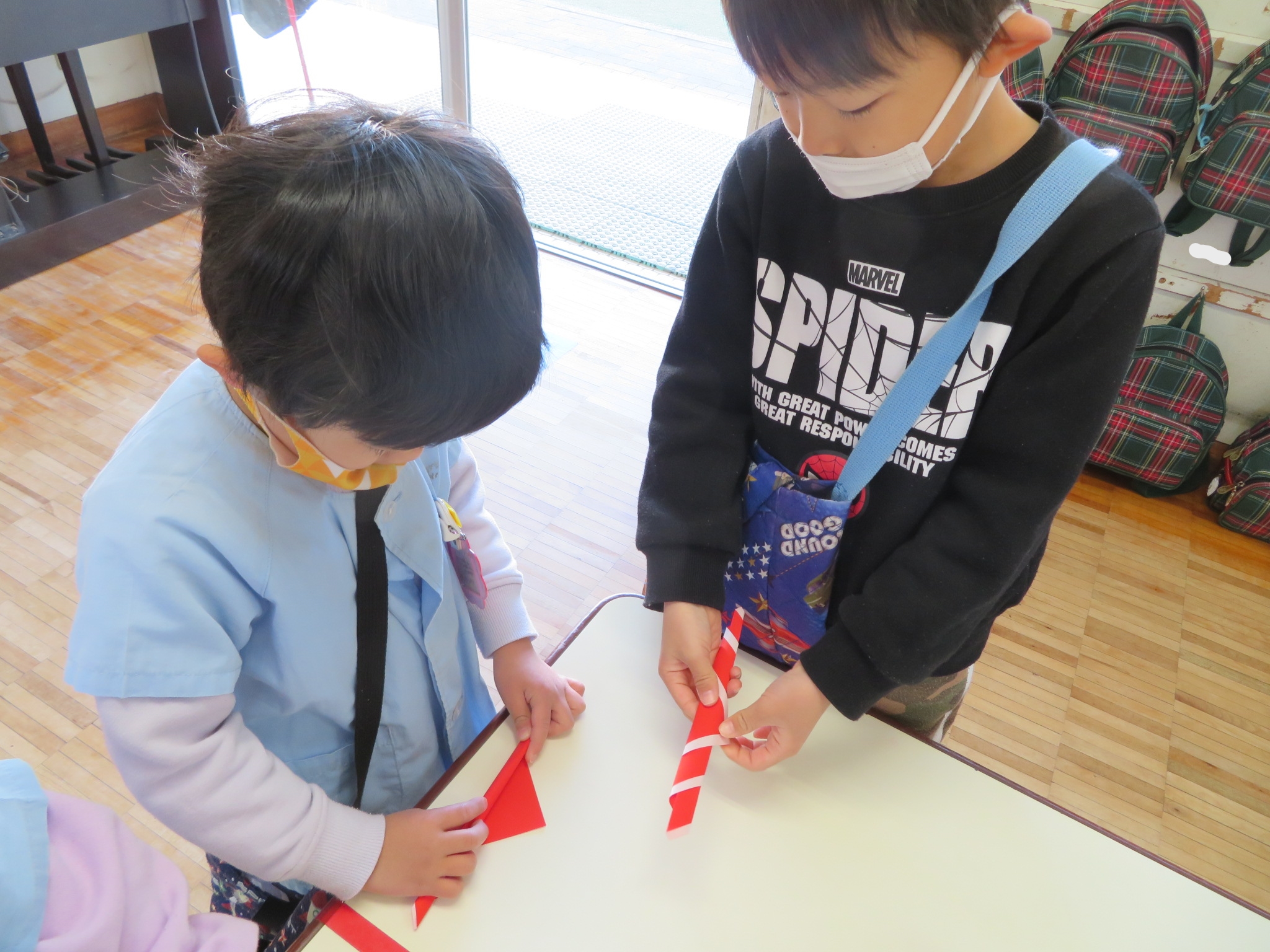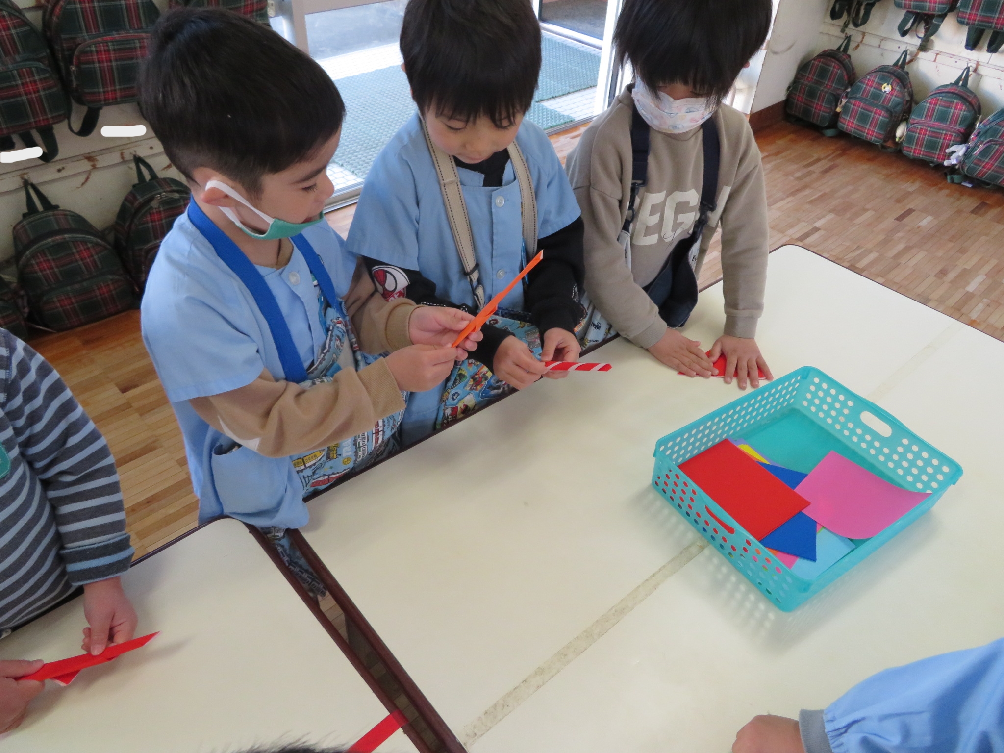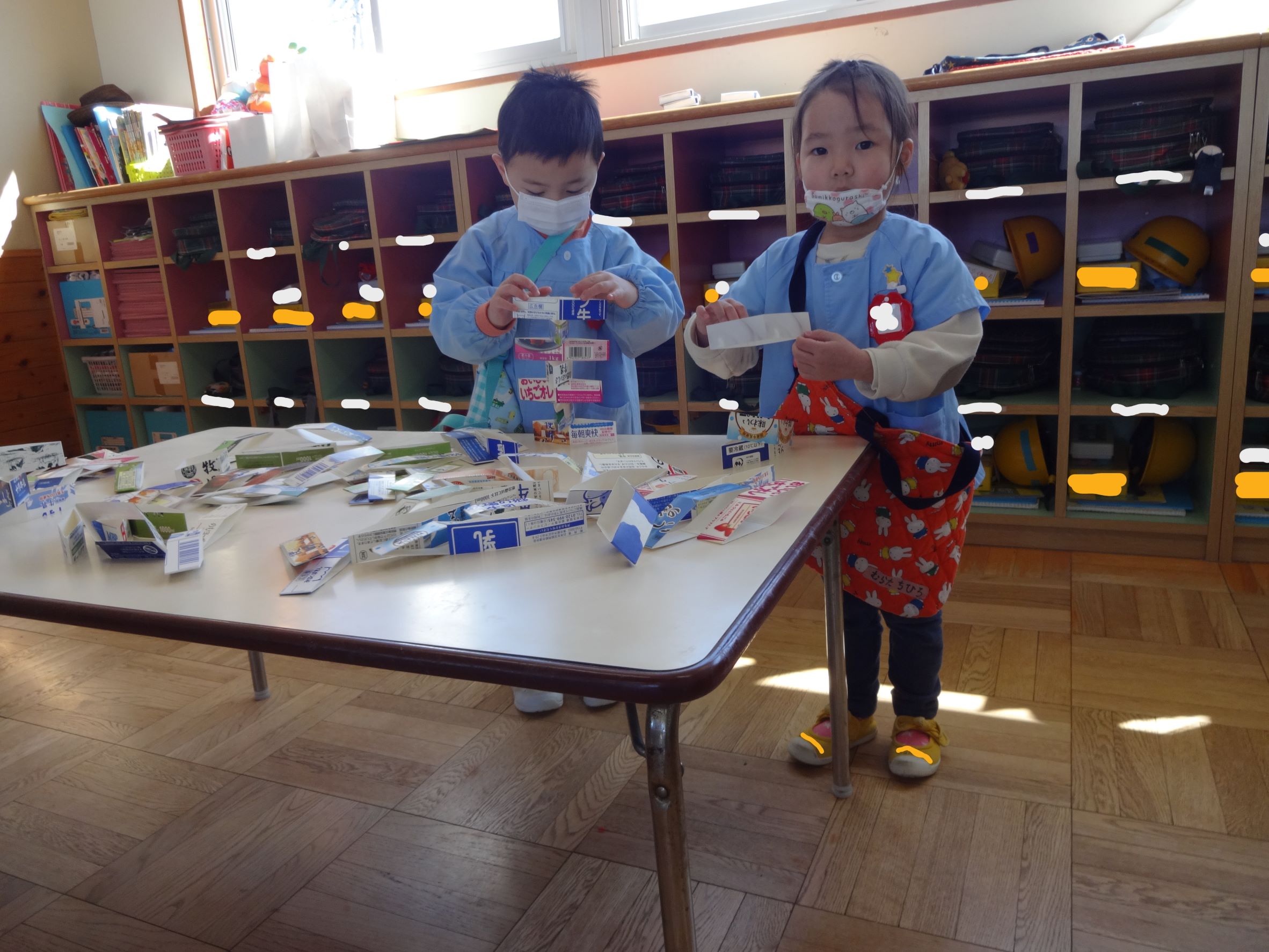 R4年2月24日(木)に園遊会が行われました。今年度は、コロナウイルス感染症対策として園児のみで開催された園遊会。各たてわりのお部屋の中には魚釣り・的当て・牛乳パックの積み上げゲーム・時計作りがあり、どれも楽しんでいました!又、段ボールで作られた迷路をしたり、新幹線のぞみに乗ったりし嬉しそうな子供たちの声が聞こえてきました♪