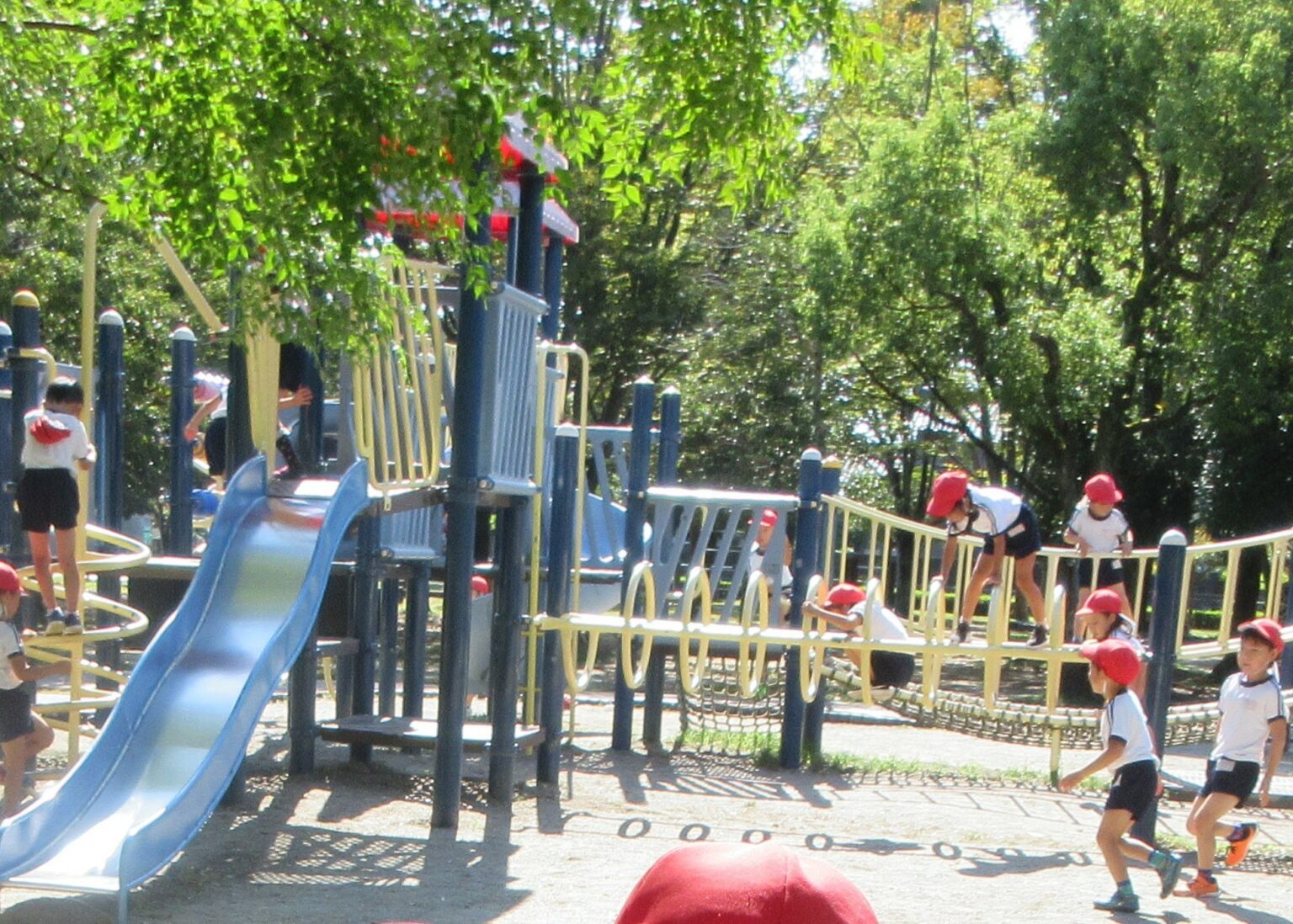 令和2年10月13日、14日、15日、20日に園外保育に出掛けました。年少・年中は園の近くの公園に、年長は美薗中央公園に向かいました。公園では、落ち葉やどんぐりなどの自然物を集めたり、お友だちや先生と鬼ごっこや遊具で遊んだりしました。園に戻ったらお待ちかねのお昼ご飯とお菓子パーティーです。美味しい!楽しい!と大満足の子どもたちでした。お天気のいい日には、園庭にシートを敷いてピクニック気分です。