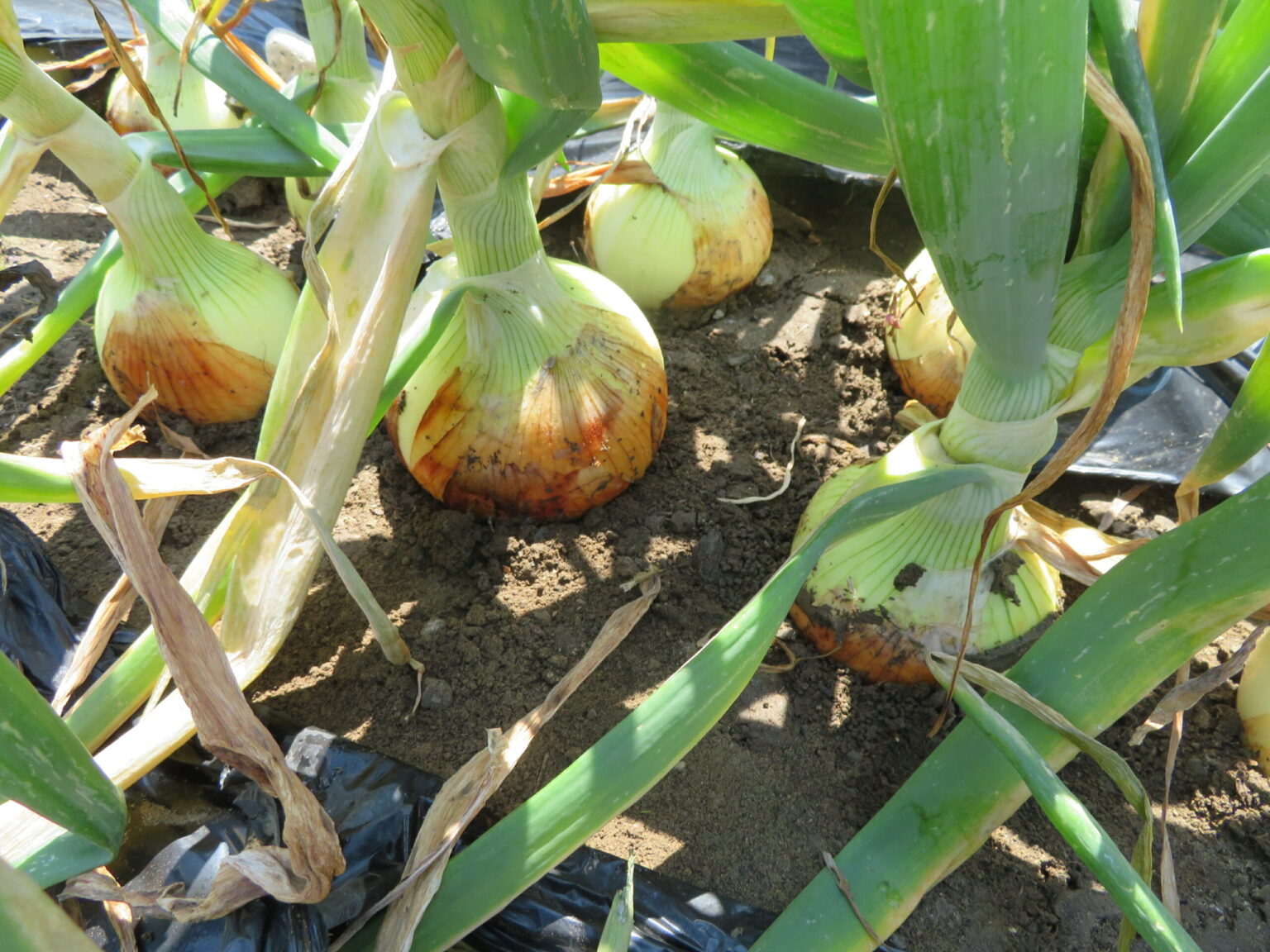 畑に行くと玉ねぎの葉が倒れ、収穫のタイミングはバッチリ!