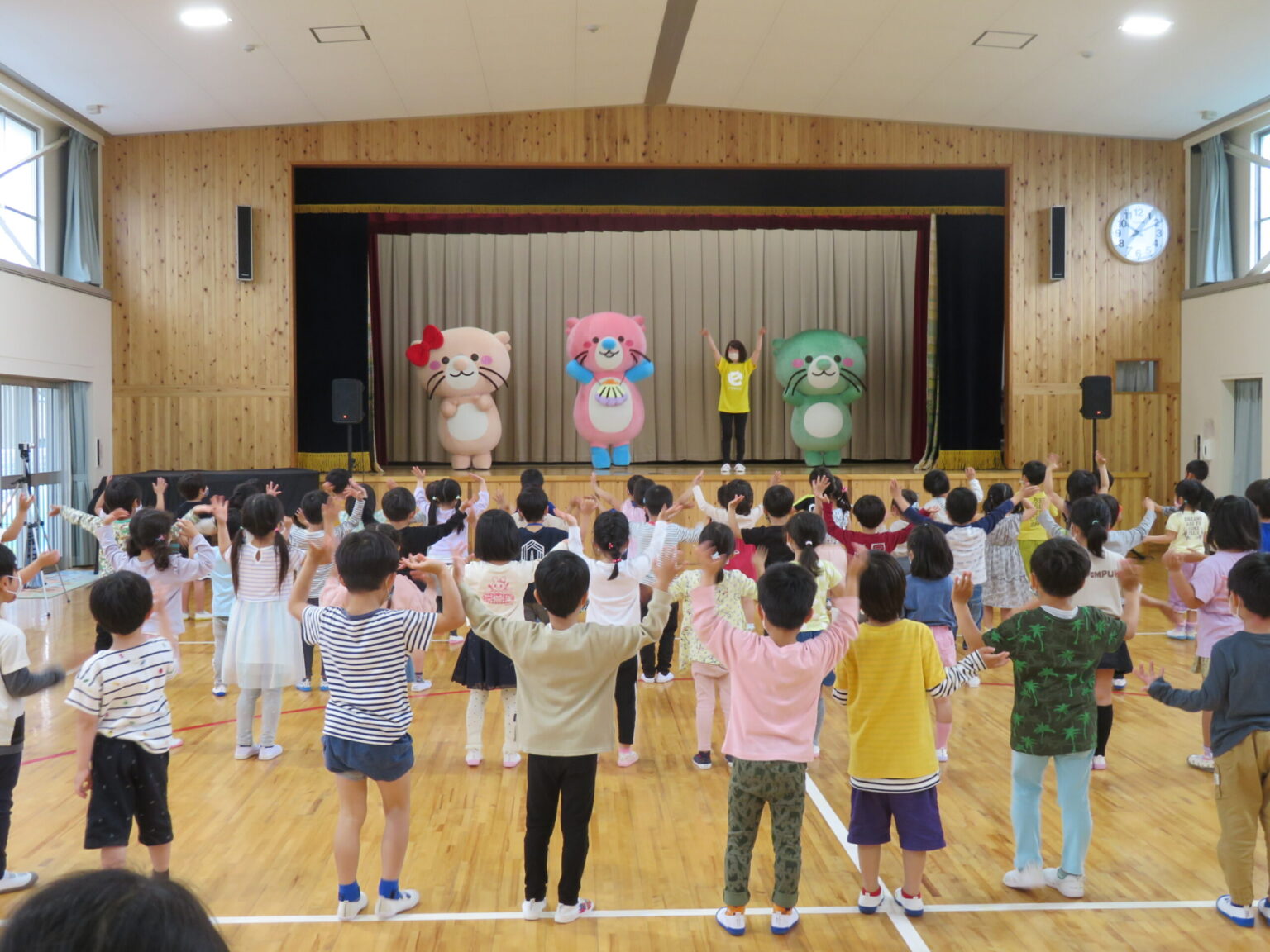 ラッコさんたちが舞台に登場すると子供たちからは歓声が上がり、手を振る子もいました。
