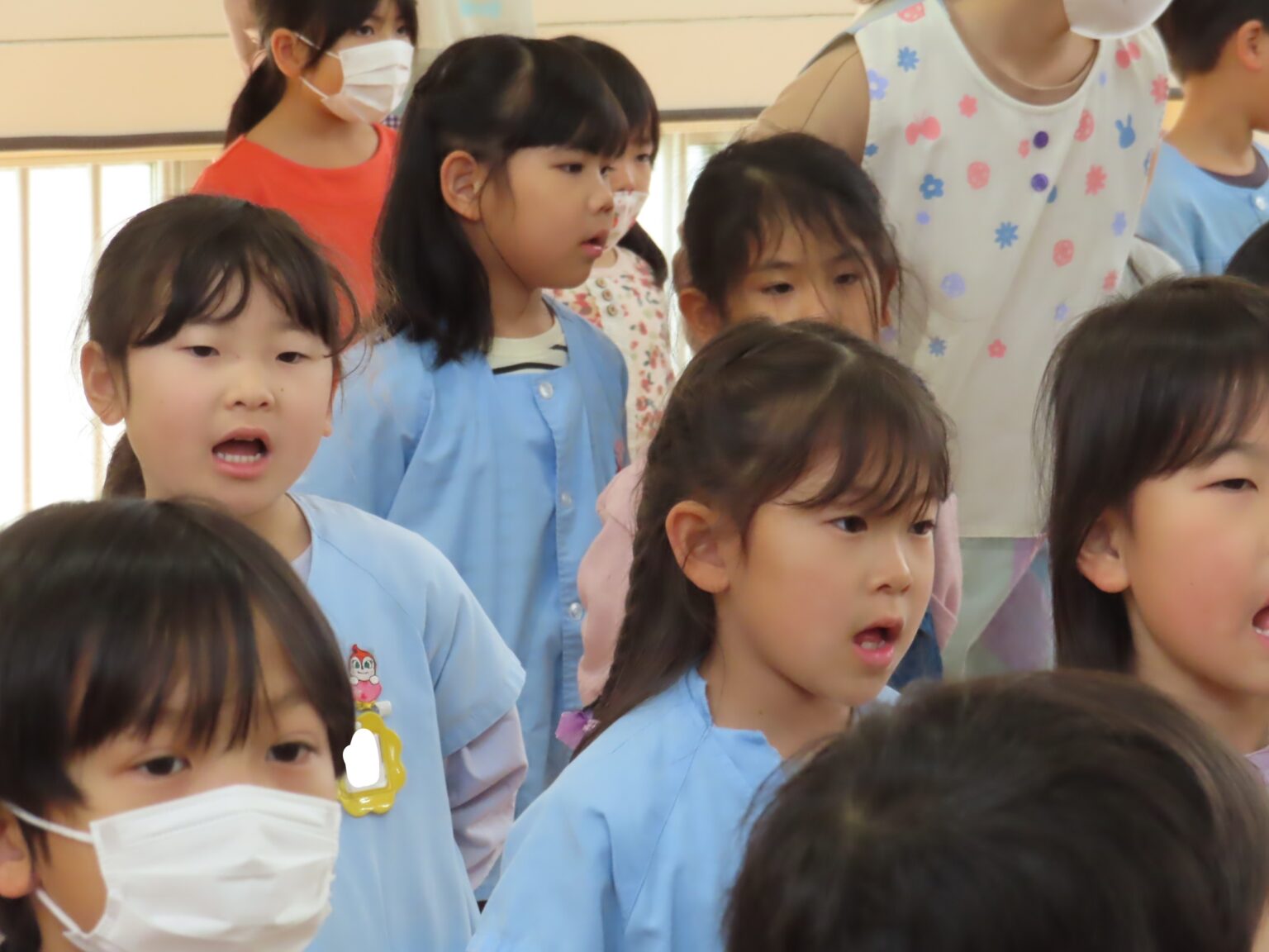 R5年3月10日(金)にお別れ会が行われました。先生たちによる3年間の思い出の劇を見たり、「思い出のアルバム」を歌ったり、子供たち同士でお別れの言葉を言ったりしました♡お部屋に戻りプレゼント交換もして楽しい時間を過ごしました。いつも優しくしてくれた松組さん、小学校に行っても頑張ってね!