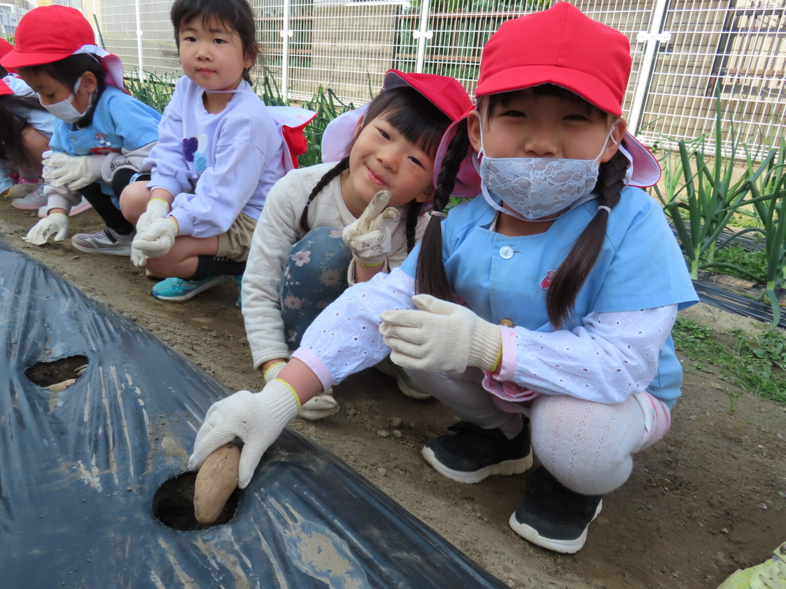R5年3月9日(木)に年中組がじゃがいもの植え付けを行いました。種芋を穴の中に入れ、上から優しく土をかぶせました。植えた後には、「大きくなあれ♡」とおまじないもしていました。大きくなるのが楽しみですね!
