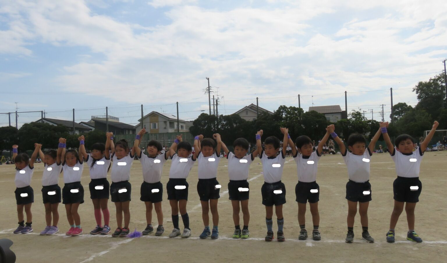 R2年10月3日(土)伎倍小学校にて運動会が開催されました。「今日のスターはわたしたち!」をスローガンに掲げ、開会式では『元気いちバンバン!』の曲に合わせて楽しく踊りました。続いて各学年かけっを行ったり、満3歳児クラス・年少組は親子でお揃いのアイテムを身に付け『ぼくらの運動会!』の曲に合わせて踊りました。年中組はボンボンを手に持ち、『ハート・オン・ファイアー』を担任の先生やお友だちと元気に踊りました。幼稚園最後の運動会となる年長組は『紅蓮華』『カイト』に合わせて組体操を行い、有終の美を飾りました!一人ひとりが自分の力を出し切り、一生懸命頑張りました。