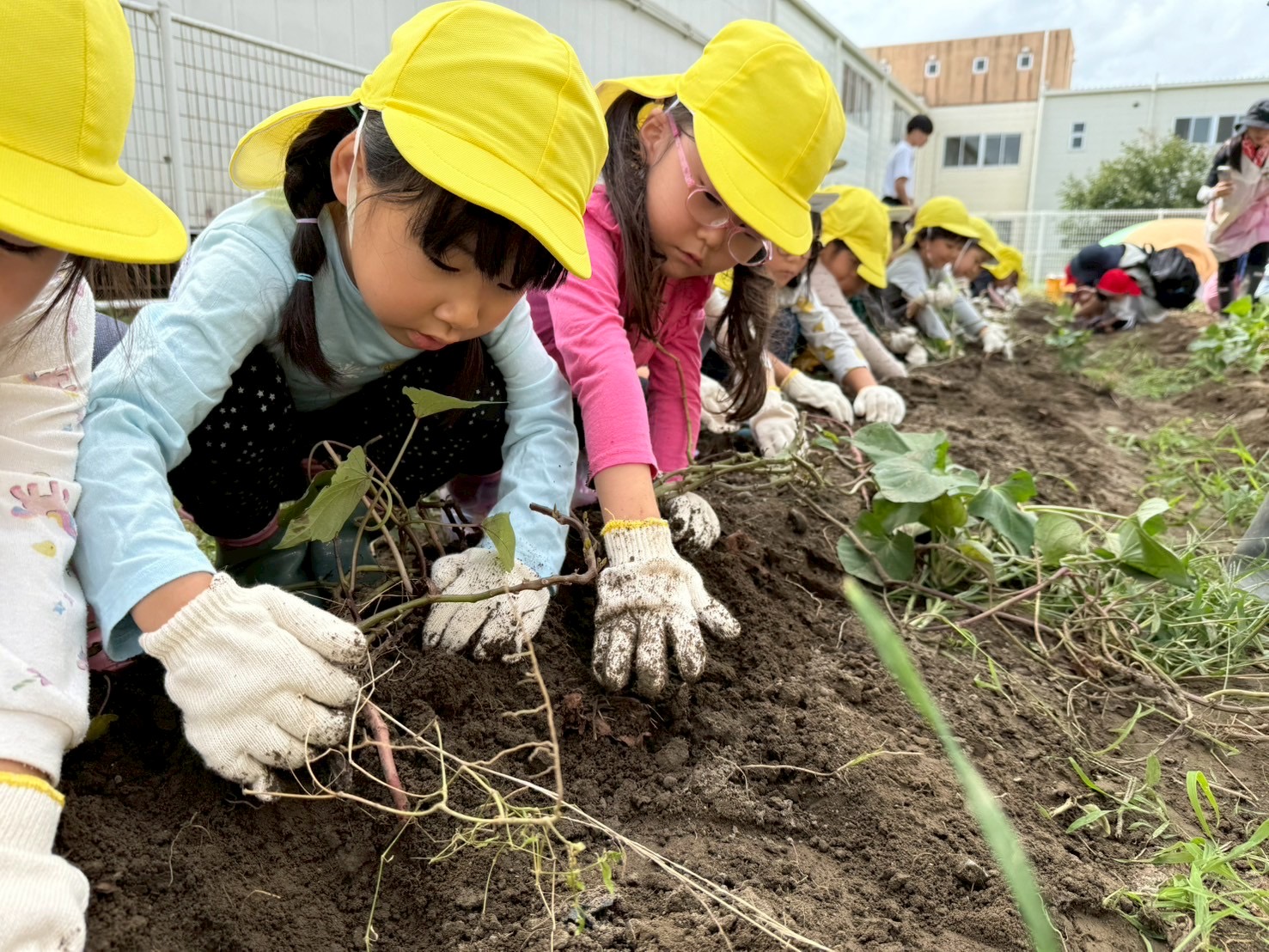 6月に年長組が苗を植え、大切に育てたさつまいも🍠暑い夏を元気に乗り超えて、収穫の時を迎えました♥️子供達は苦戦しながら一生懸命掘り、さつまいもが採れると、大喜びで満面の笑みを見せてくれました。